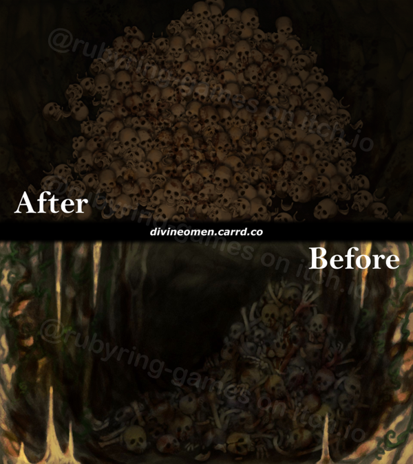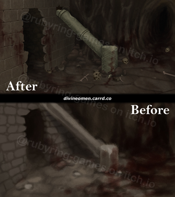 Every environment, object, and interactable scenario in Divine Omen Chapter 2 is officially complete! That means the bulk of the artwork is complete but there’s still LOTS to do. With that said, I’m very impressed by the progress I’ve made and I wanna share some with you! I made a lot of decisions while making these environments that I hope will elevate this chapter to another level. If nothing else, it’s certainly an improvement over Chapter 1. With my yapping out of the way, let’s get into some of the work I’ve done: